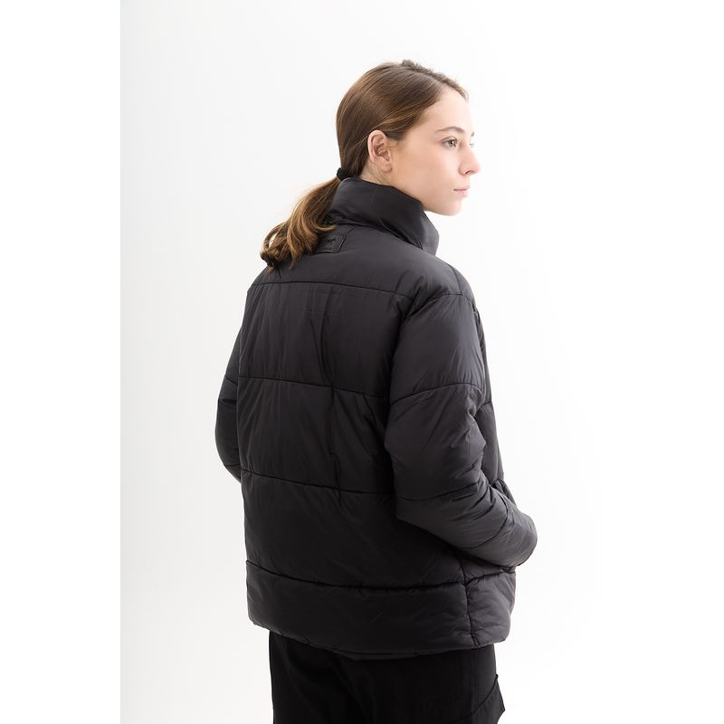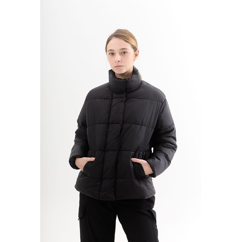 Campera corta puffer de nylon matelaseada con cuello alto.