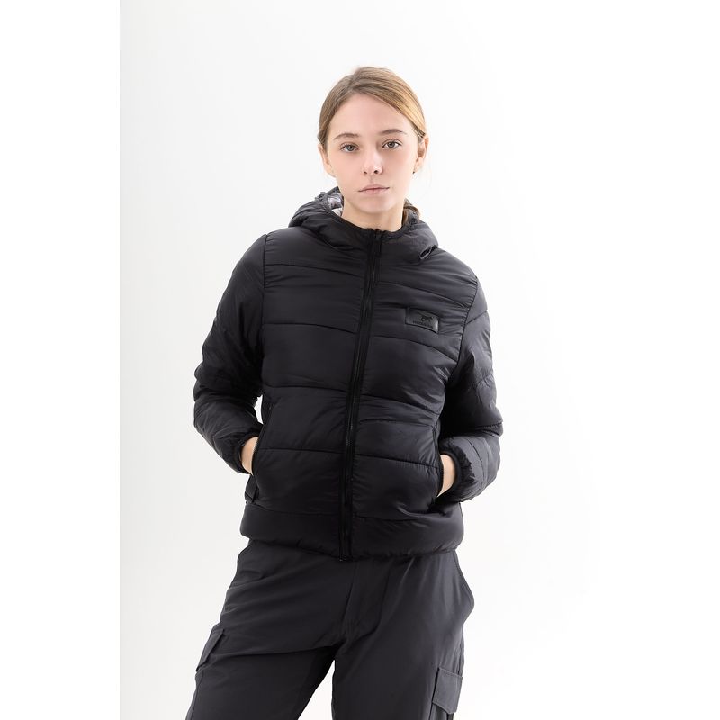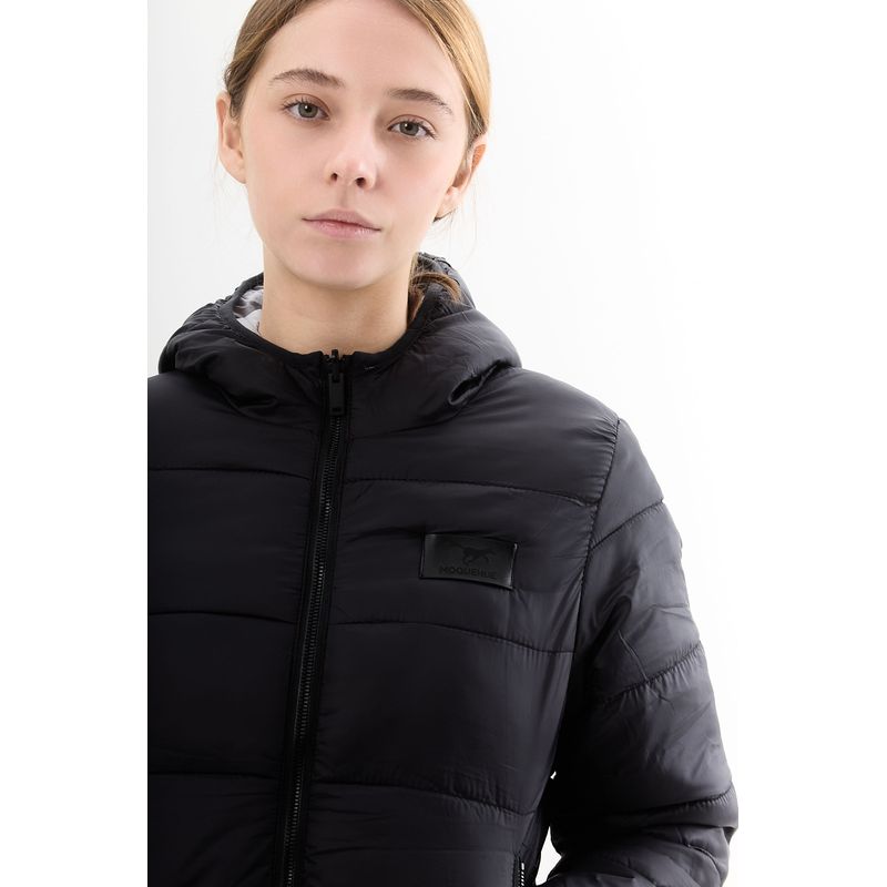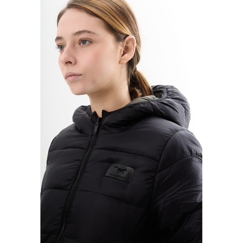 Campera de nylon matelaseada con capucha .