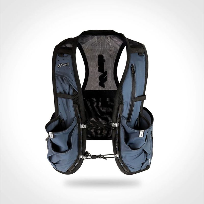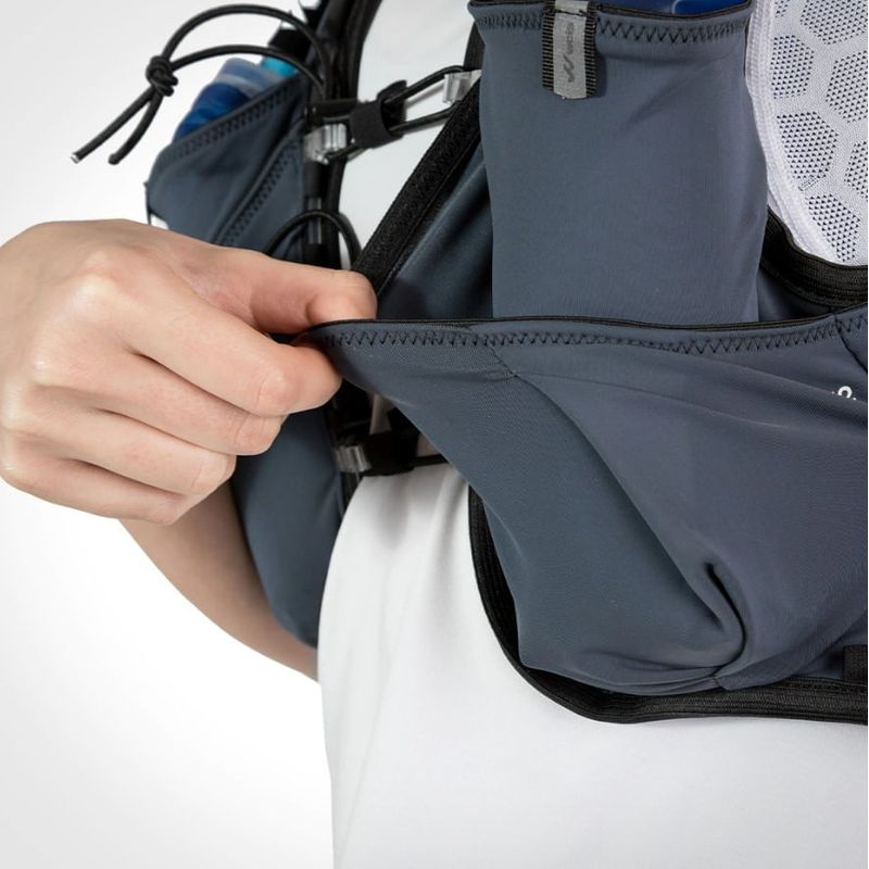 El chaleco de hidratación SIMER VEST 1 L reúne 11 bolsillos, uno de ellos en la espalda, expandible, con capacidad para llevar un rompevientos o una manta térmica, todo al alcance de la mano.